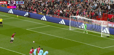 第90+7分钟,绝杀!杰登-安东尼送点,B费点射命中,曼联3-2领先伯恩利